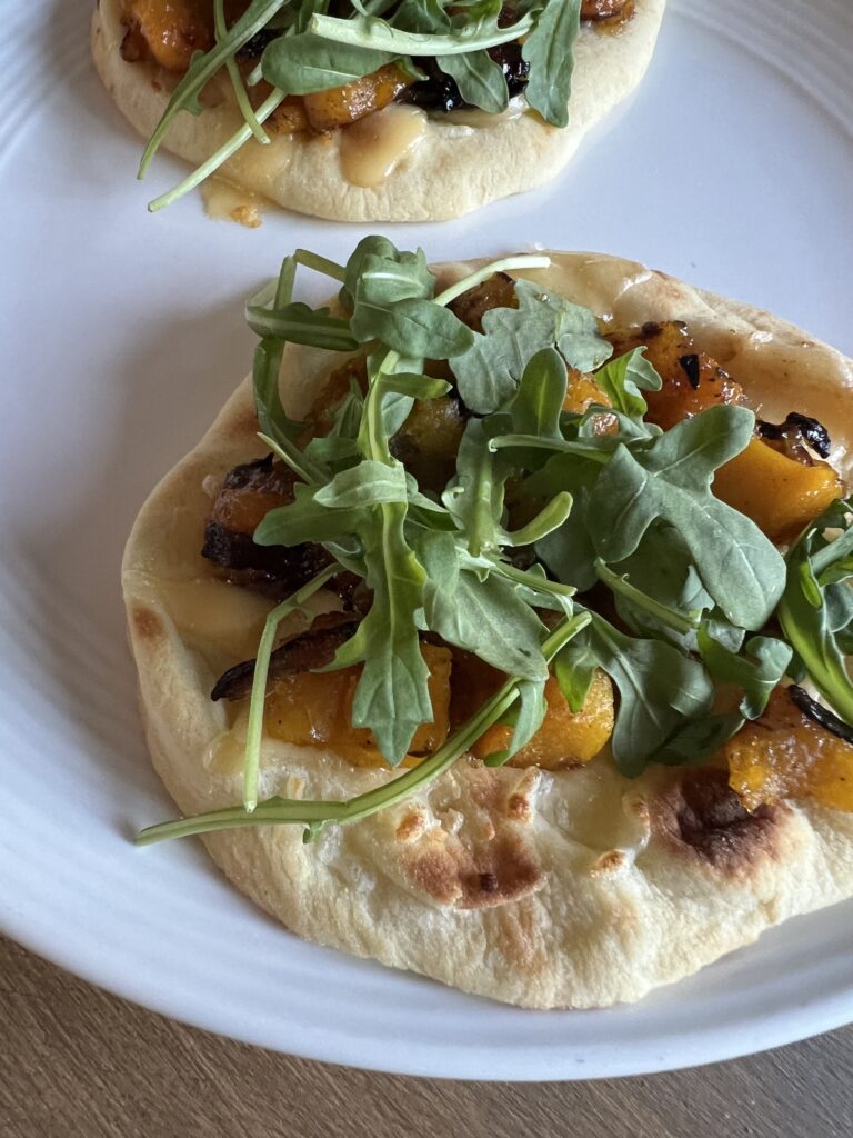 - Assemble and serve: Remove from oven. Top each flatbread with the butternut squash mixture and fresh arugula. Serve immediately.