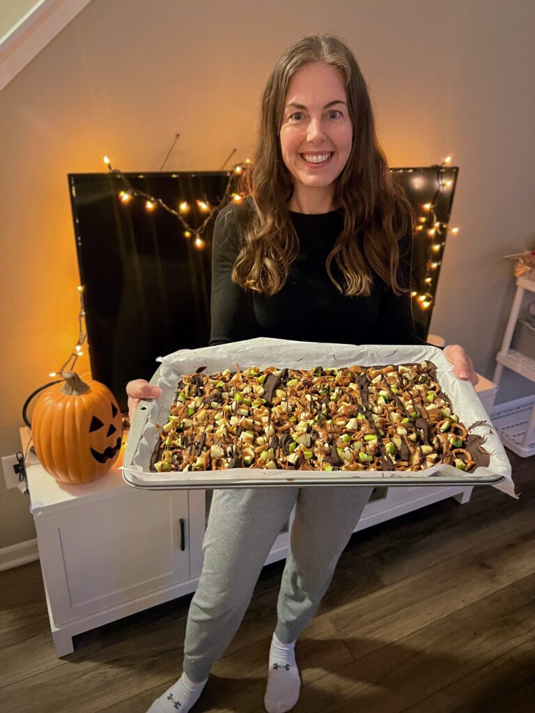 It’s like a candy bar, caramel apple, and snack mix rolled into one festive treat.