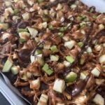 - Add apples: Dice green apples into small pieces and blot dry with paper towels. Scatter evenly over the chocolate-pretzel layer.