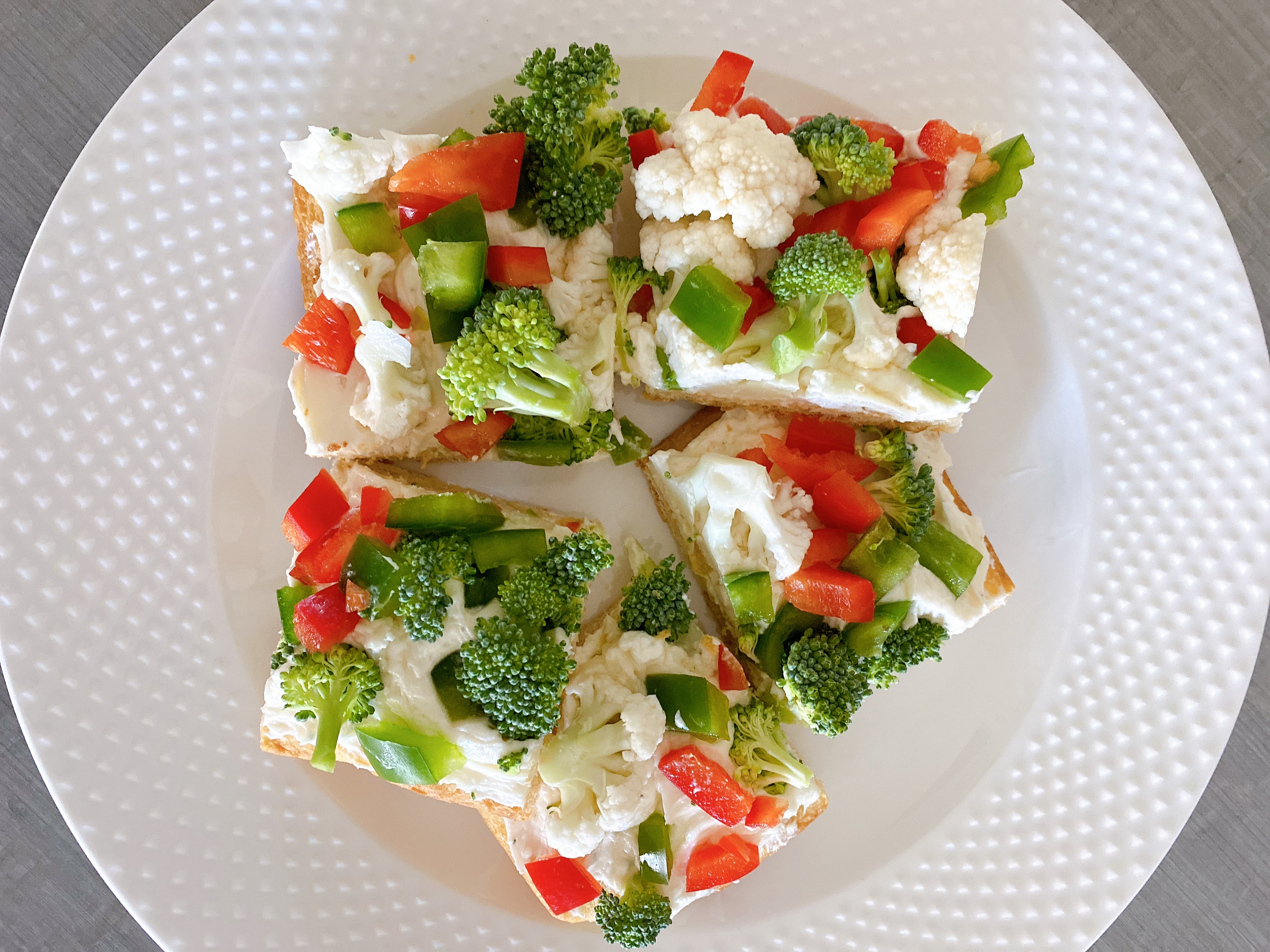 - It’s forgiving. Forget a topping? Overbake the crust slightly? No one will know once you pile on the cream cheese spread and veggies.