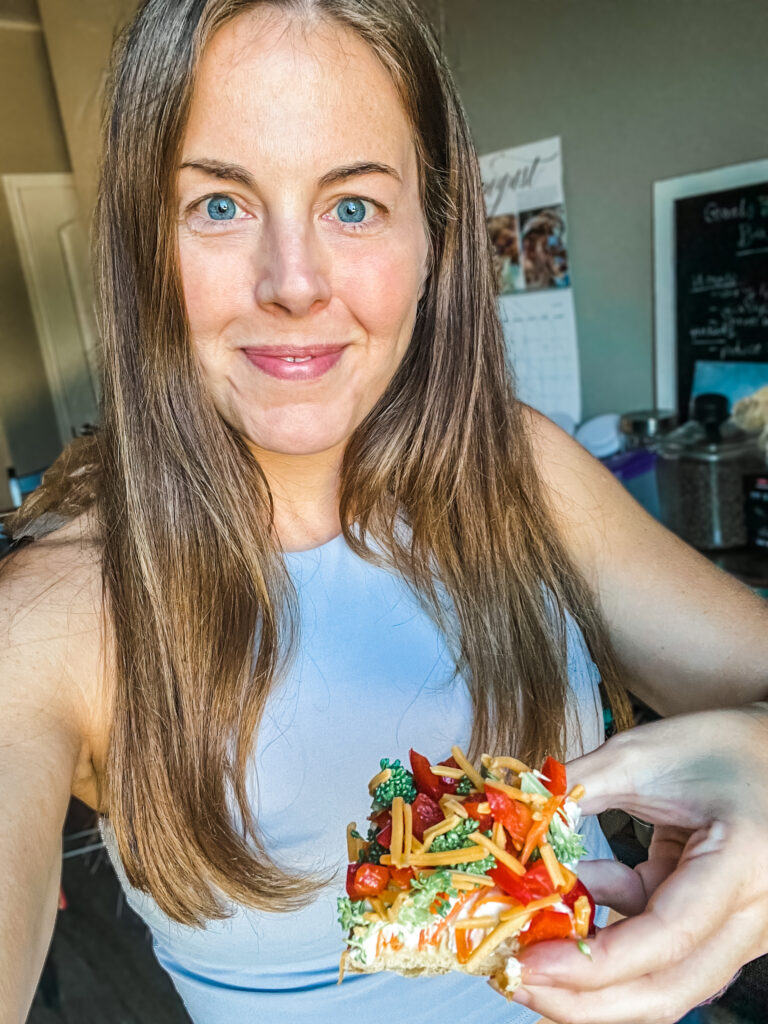 Yep, depending how heavy-handed you are with the toppings. Each square usually has about ¼–⅓ cup of veggies. Eat 2–4 slices and you’ve hit around one serving (about 1 cup). Load it up and you might sneak in even more. Crescent dough and cream cheese don’t cancel out the fact you just ate broccoli, peppers, and carrots, and that’s a win in my book.