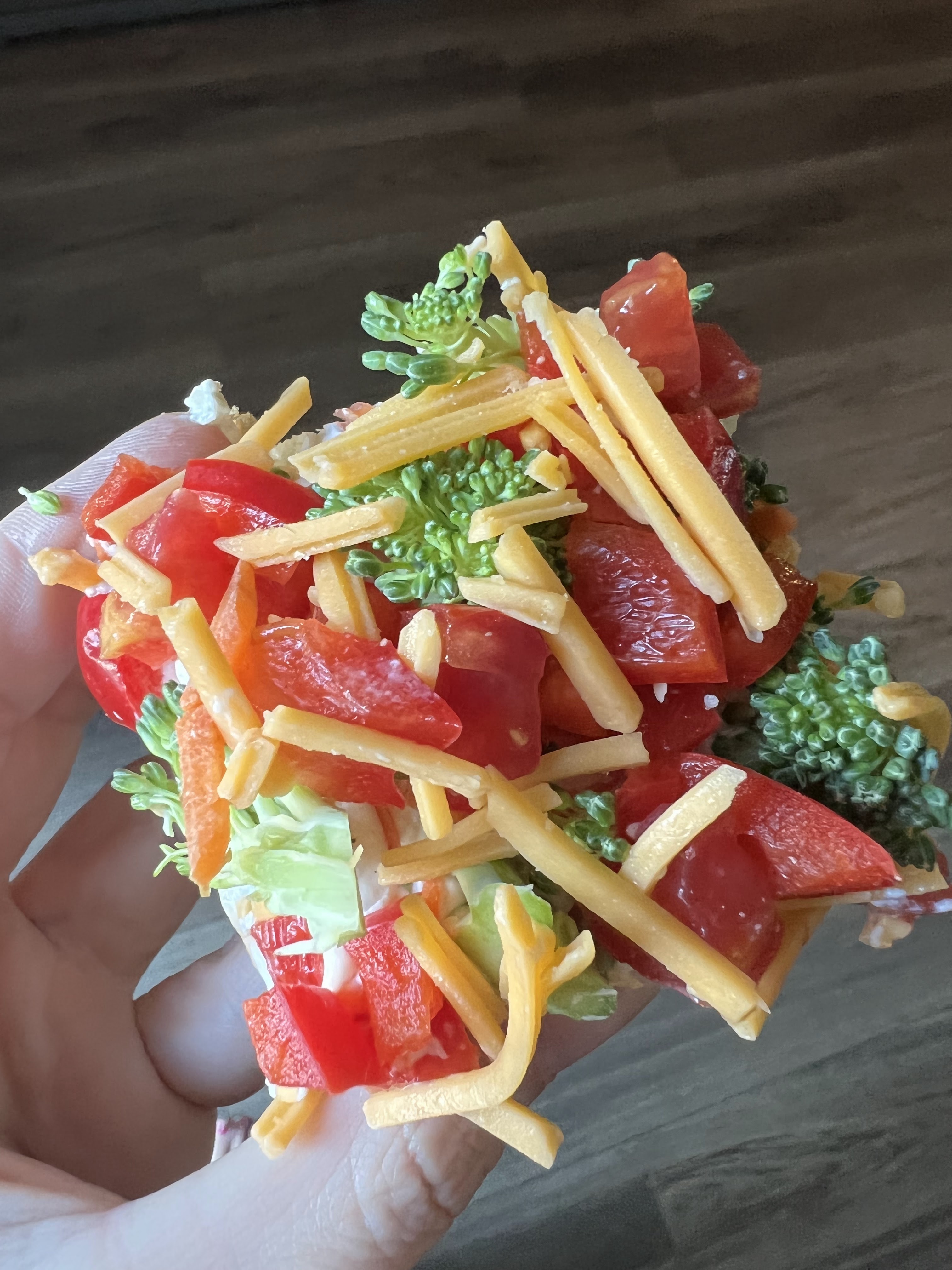Veggie “toppings” – My favorite veggie combo is broccoli, cauliflower, shredded carrots, and bell peppers. It’s colorful, crunchy, and perfectly balanced. And one time I forgot the carrots and cheese, and honestly? Still amazing. That’s how forgiving this recipe is.