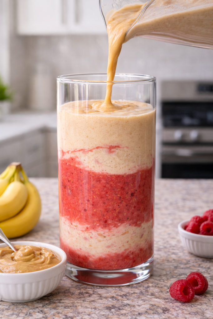 Healthy Peanut Butter and Jelly Smoothie (High-Protein, Layered & Delicious)