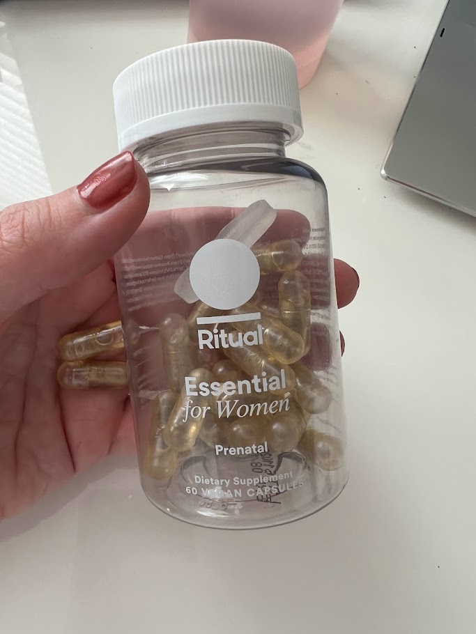I took Ritual prenatal vitamins and used their essential protein shake in smoothies, not because they were trendy, but because they were easy to tolerate and easy to stay consistent with.