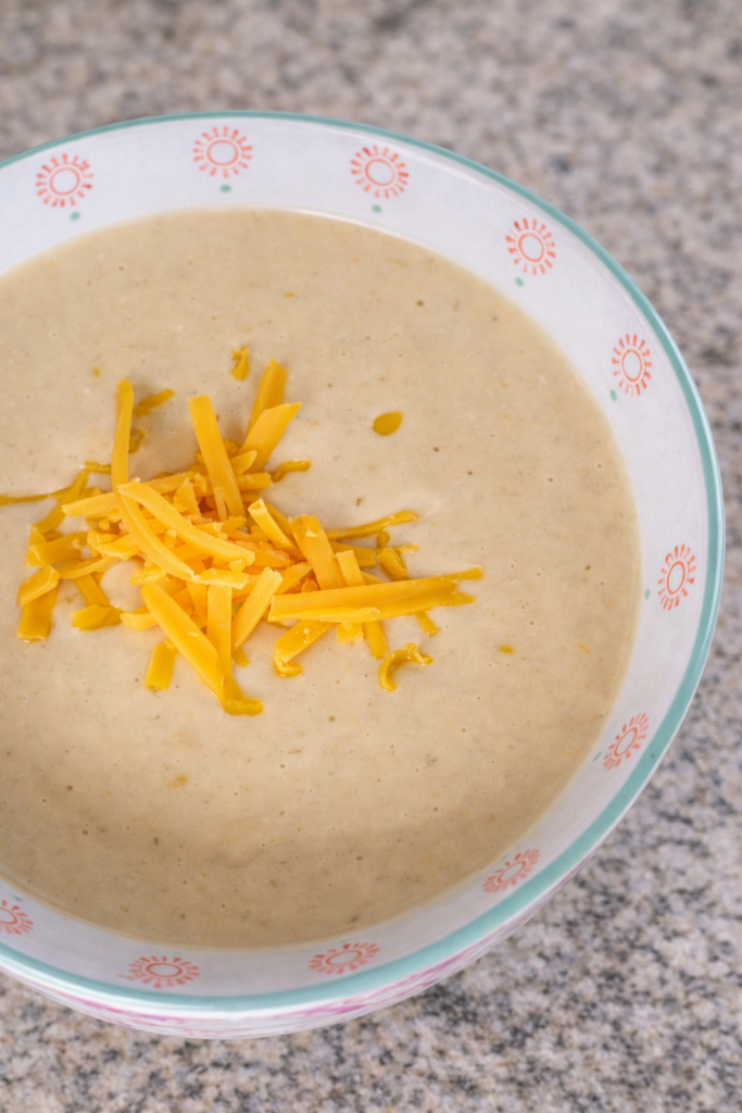 Yes. Carefully transfer the soup to a blender in batches, then return it to the pot before adding cheese.